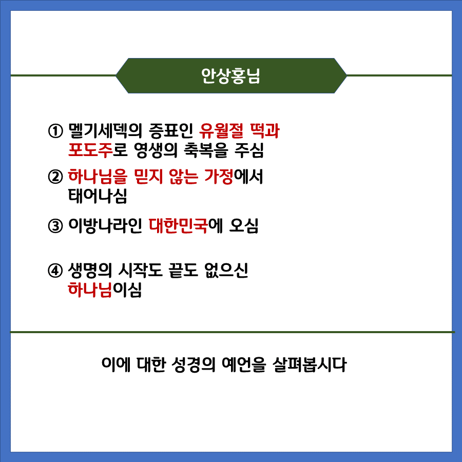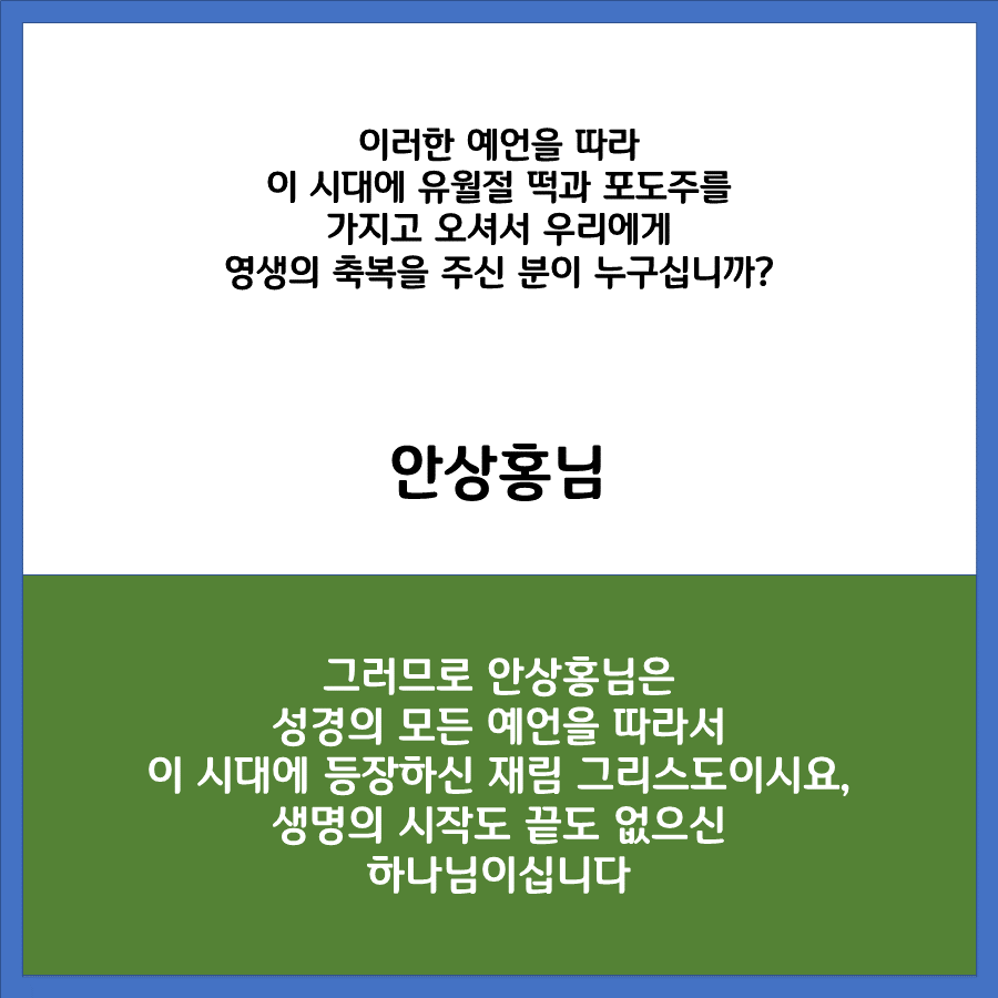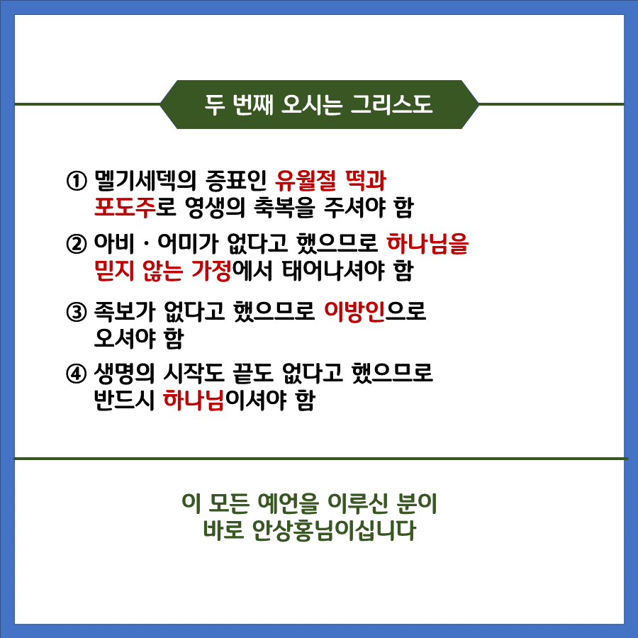 예언을 따라 이 시대 우리를 구원에 이르게 하기 위하여 안상홍님께서 사람으로