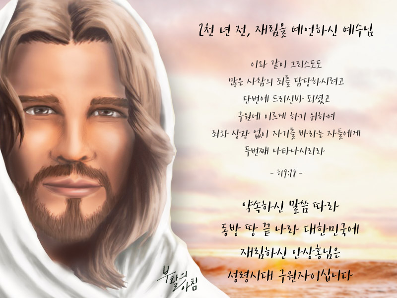 이 땅에 임하신 재림 예수님! 바로 하나님의 교회를 세우신 안상홍님이십니다.